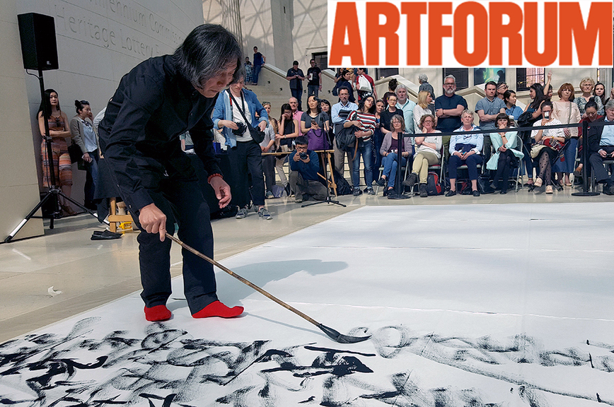 已经完成的作品,丝丝和斜杠的选集,松散地连接着某种疯狂的草书世界文字,被遗弃在蔚蓝的光线之下,侵入了大英博物馆巨大的玻璃屋顶。这位艺术家几乎没有挥之不去,放下他的画笔后消失在人群的瞬间。